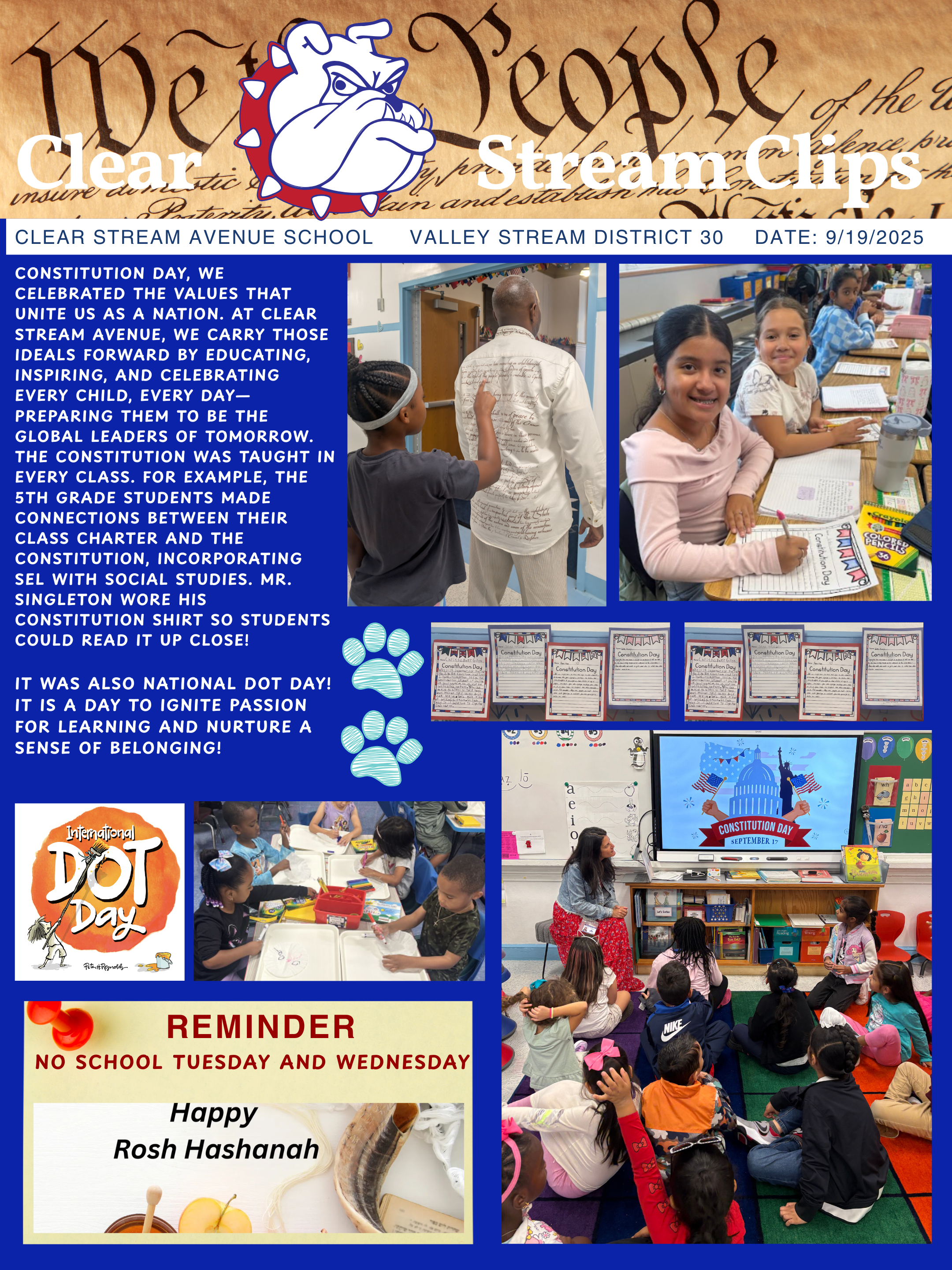 Welcome back to another exciting school year at Clear Stream Avenue School, home of the Bulldogs! I trust that each of you had a rejuvenating and enjoyable summer break, filled with memorable moments and well-deserved rest. This year, our district theme is "Every Picture Tells a Story." We anticipate a year filled with art, pictures, videos, and literature that will create a vibrant and engaging atmosphere for our students. This theme is sure to resonate with children of all ages, bringing joy and excitement throughout the year.