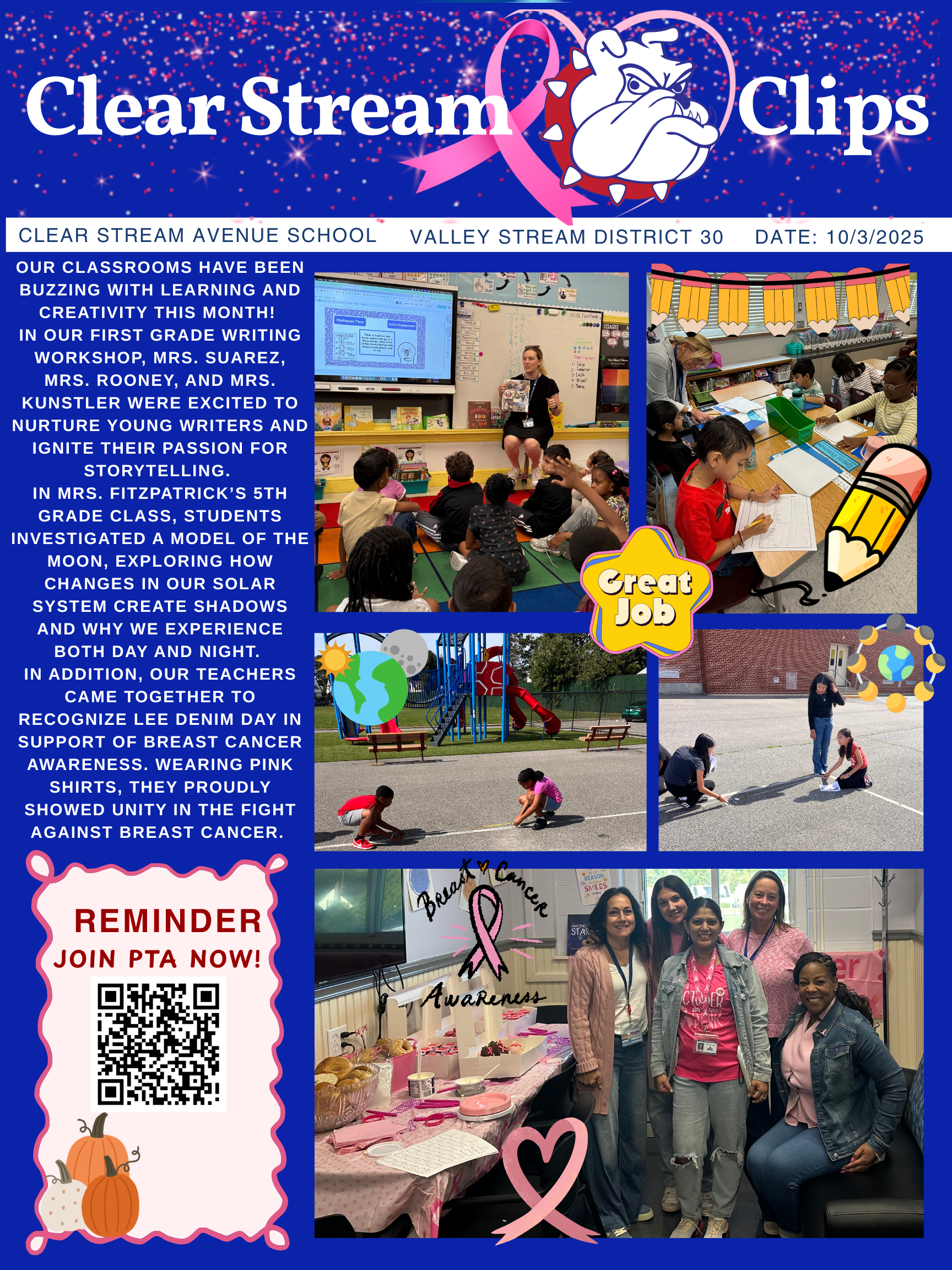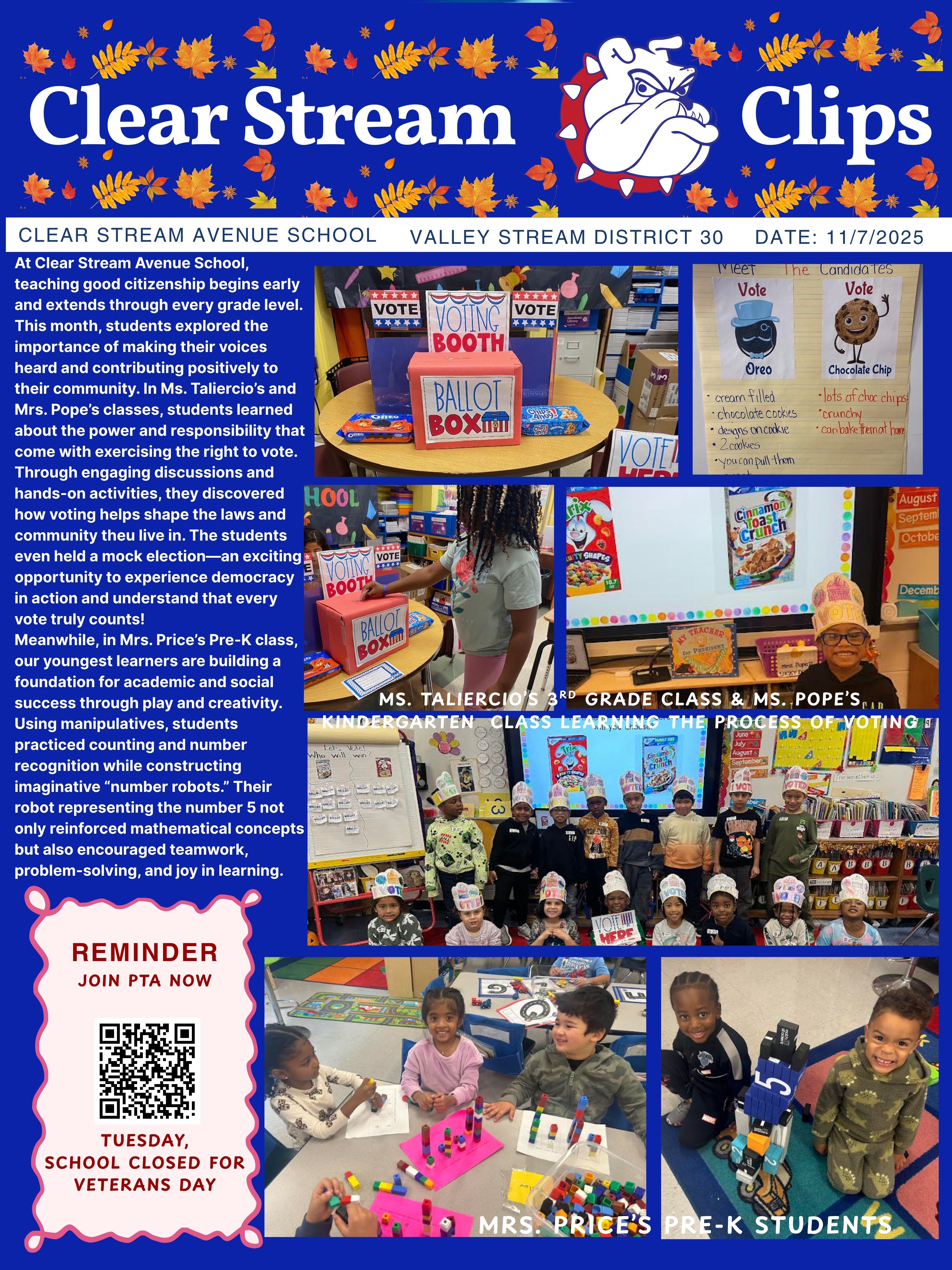 Clear Stream Avenue School continues to excel academically, with students consistently achieving high scores and demonstrating exceptional growth across all grade levels. A strong emphasis on reading, science, and mathematics throughout the school year ensures that students build critical thinking skills, creativity, and problem-solving abilities that prepare them for future success. This commitment to academic excellence reflects the dedication of both staff and students in fostering a love for learning and a culture of achievement. Please note the following important changes: